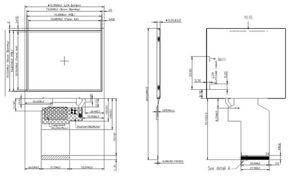 | Área activa | 52.56 ((H) × 70.08 ((W) mm |